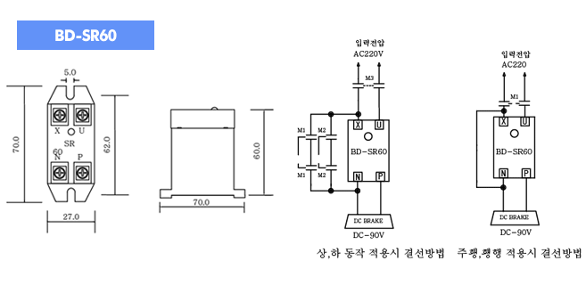 | - 제품의 최대 사용전류는 30A 이내이다. - 빠른 응답속도와 높은 내압(AC2000V) 보강으로 최대한의 수명을 보장한다. - 상단의 LED 표시동작에 따라 1차측과 2차측의 고장 및 BRAKE 동작 유무를 판단 할 수 있다. - 안전 카바 적용으로 감전 예방이 된다. - HOIST, CRANE 의 대용량 권상 BRAKE 제어용으로 적합하다. |