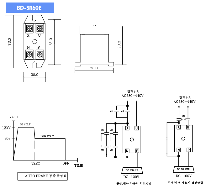 | - 제품의 최대 사용전류는 30A 이내이다. - 빠른 응답속도와 높은 내압(AC2000V) 보강으로 최대한의 수명을 보장한다. - 상단의 LED 표시동작에 따라 1차측과 2차측의 고장 및 BRAKE 동작 유무를 판단 할 수 있다. - 안전 카바 적용으로 감전 예방이 된다. - HOIST, CRANE 의 대용량 권상 BRAKE 제어용으로 적합하다. |